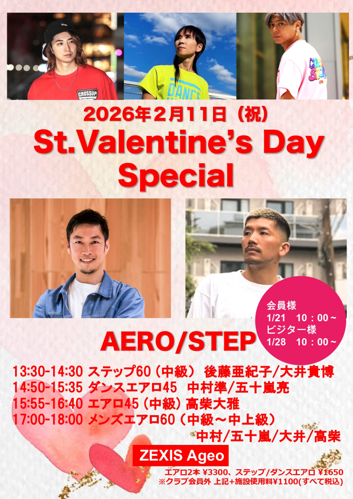 【1/21 10:00~予約開始】AERO/STEP バレンタインスペシャルレッスン!! 2/11(水祝)開催!!